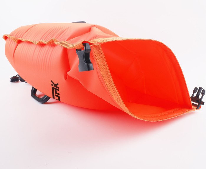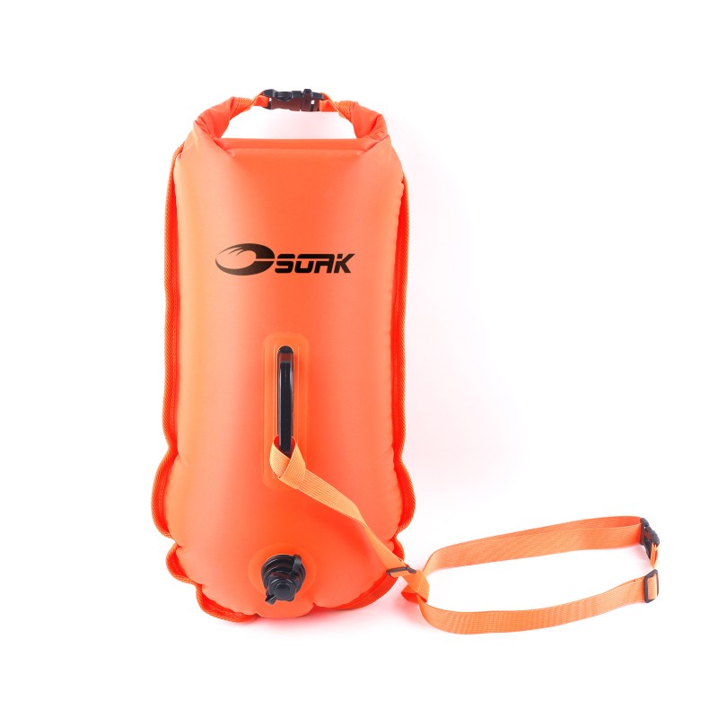 Soak simboj på 28 liter är det perfekta hjälpmedlet för dig som simmar i öppet vatten. Den starka orange färgen ger hög synlighet i vattnet och ökar säkerheten, samtidigt som den integrerade förvaringsfickan låter dig ta med dig viktiga småsaker som mobil, nycklar eller energibars – tryggt och torrt under hela simpasset. Perfekt både för träning och fritidssimning.